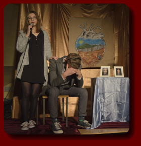 Adwokat: Kamil Zarabski 1b Jezus: Szymon Bocheński 3 f Bezdomny: Kamil Biedrawa 4 m Sąsiadka: Aneta Tokarczyk 3 j Samotna matka: Lidia Zaryczny 3 j Narrator: Aleksandra Turska 3 i
